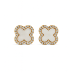 14K yellow gold cluster earrings with mother of pearl and diamonds.