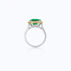 Emerald and diamond ring on yellow and white gold.