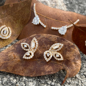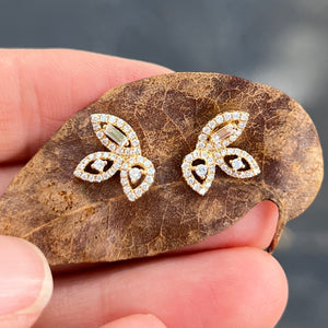 18K yellow gold leaf earrings with .46 carat total weight in diamonds.