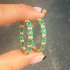 Meet the hoops that think they’re royalty. Saturated emeralds sparkle alongside diamonds in a lush yellow gold setting. Perfect for when you want your hoops to whisper old money but still feel totally now. The sleek latch closure clicks shut for a secure, worry-free fit. You’ll hear the click that tells you they're locked in and ready for the day (or night) ahead.