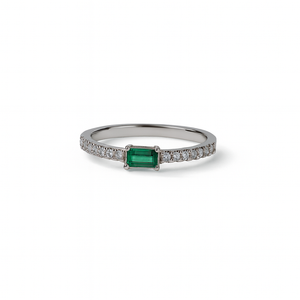 A dainty emerald and diamond ring crafted in 14K white gold, featuring a 0.22 ct emerald and 0.22 ct of diamonds. Sweet and sophisticated, this petite design is perfect for everyday wear or as a thoughtful gift