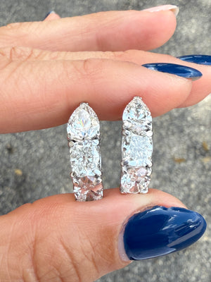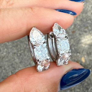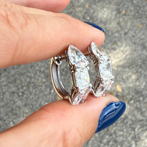 All eyes on you. These are not your average huggies. Featuring three major lab-grown diamonds in each earring — a pear, cushion, and oval — these bold beauties total a jaw-dropping 6.81 carats. Yes, you read that right.
