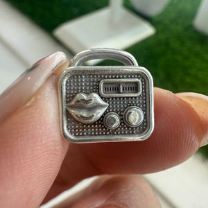 Handcrafted in sterling silver, it’s shaped like a vintage radio, a playful nod to the way news (and chisme) used to travel. No batteries, no dial—just word of mouth.